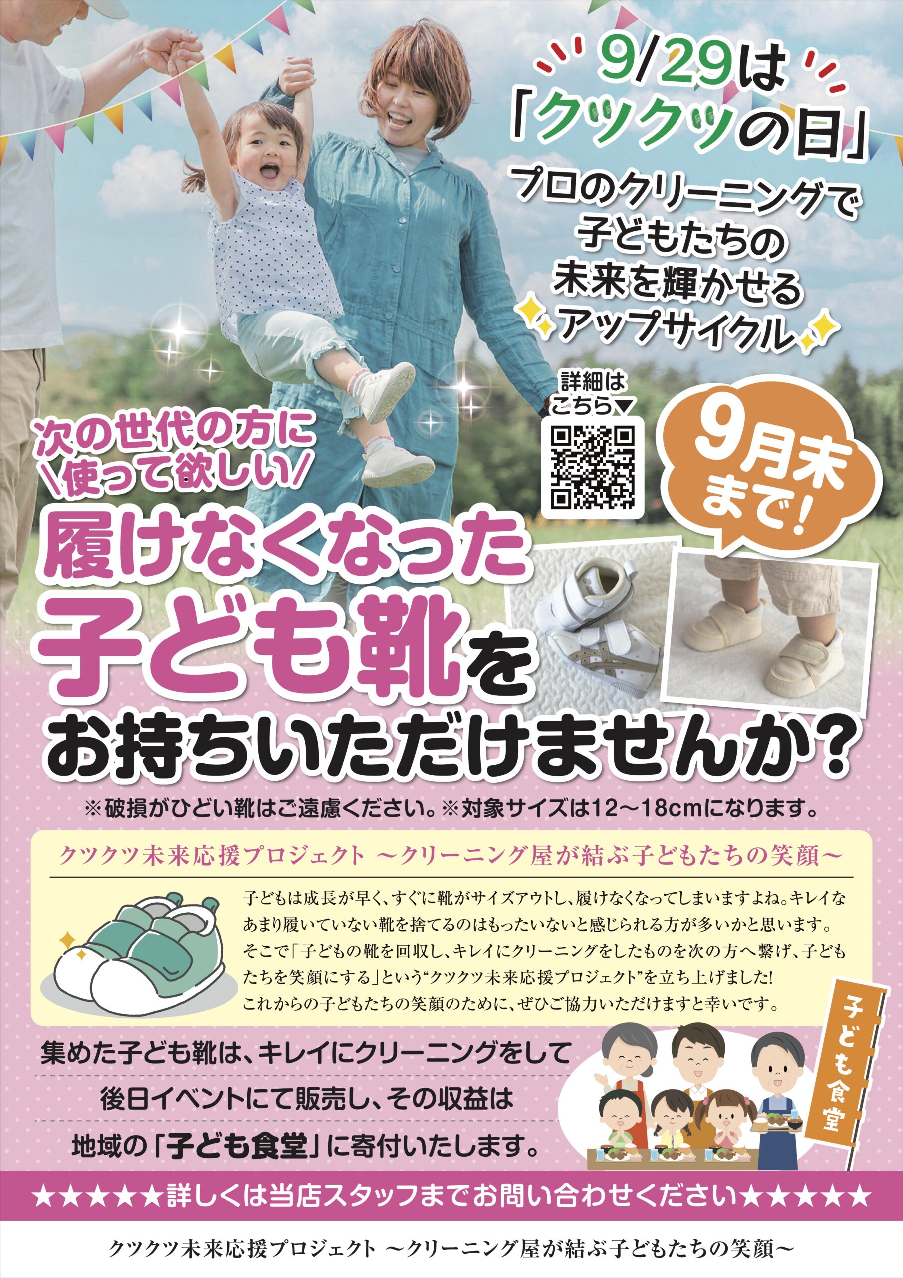 有限会社サカクリーニング(本社:徳島県徳島市、代表取締役社長:坂 雅弘)は、2025年9月1日から「クツクツ未来応援プロジェクトに参加します。